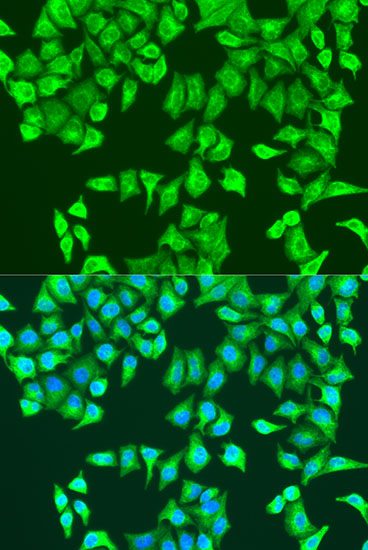 Immunofluorescence analysis of U2OS cells using RHOA antibody. |