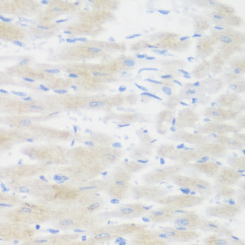 Immunohistochemistry of paraffin-embedded rat heart using BMP2 antibody.