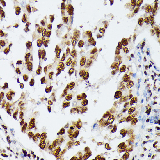 Immunohistochemistry of paraffin-embedded human lung cancer using HNRNPD antibody. |