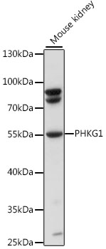 Western blot analysis of extracts of mouse kidney, using PHKG1 antibody. |