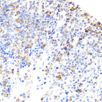 Immunohistochemistry of paraffin-embedded mouse spleen using BTK antibody.