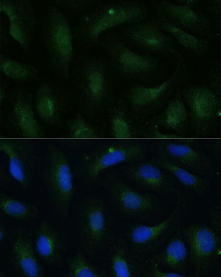 Immunofluorescence analysis of U-2 OS cells using COPG2 Polyclonal Antibody. |