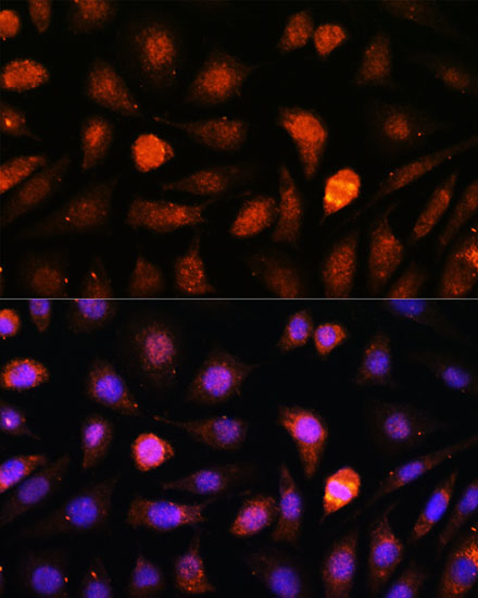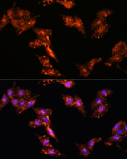 Immunofluorescence analysis of L-929 cells using CDK5RAP1 antibody. |