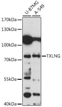 Western blot analysis of extracts of various cell lines, using TXLNG antibody. |