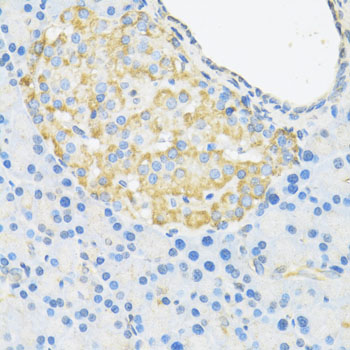 Immunohistochemistry of paraffin-embedded rat islets of langerhans using SMAD3 antibody. |
