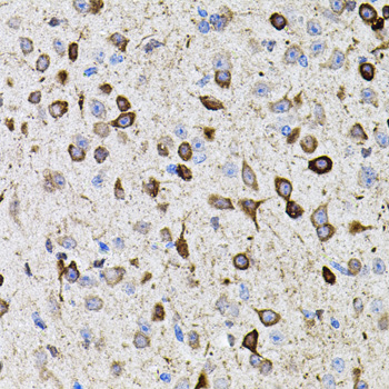 Immunohistochemistry of paraffin-embedded mouse brain using MMP9 antibody. |