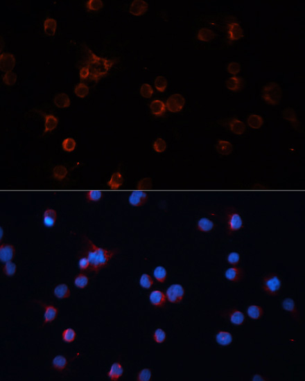 Immunofluorescence analysis of Jurkat cells using TH antibody. |