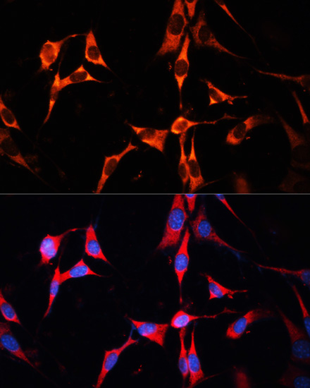 Immunofluorescence analysis of NIH/3T3 cells using RAB7A antibody. |