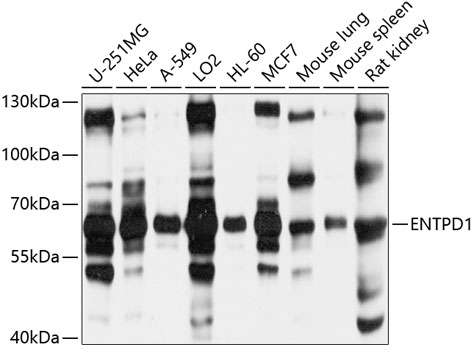 Western blot analysis of extracts of various cell lines, using ENTPD1 antibody.
