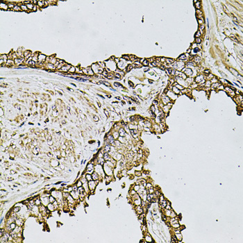 Immunohistochemistry of paraffin-embedded human prostate using CSTB antibody.