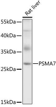 Western blot analysis of extracts of rat liver, using PSMA7 antibody.