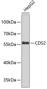 Western blot analysis of extracts of HepG2 cells, using CDS2 antibody. |