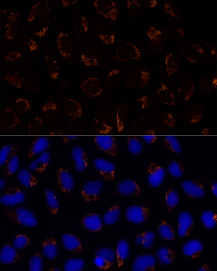 Immunofluorescence analysis of U-2 OS cells using TRAP1 Polyclonal Antibody. |