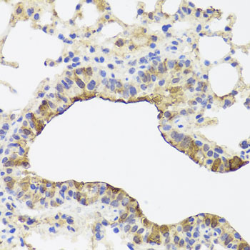 Immunohistochemistry of paraffin-embedded mouse lung using TOMM34 antibody. |