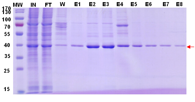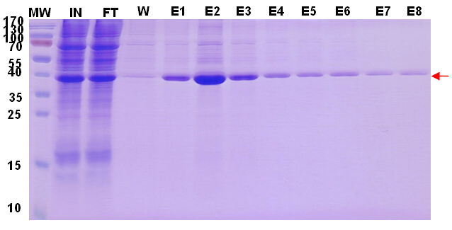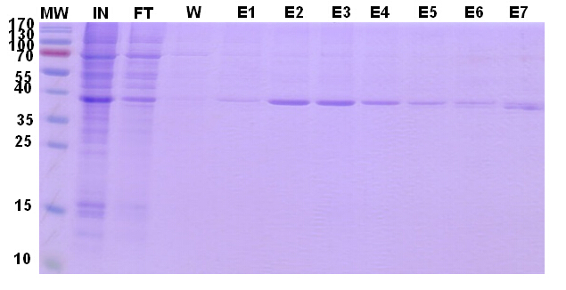 Figure 4. Target protein purification profile. Coomassie blue staining.Reducing-PAGE analysis.