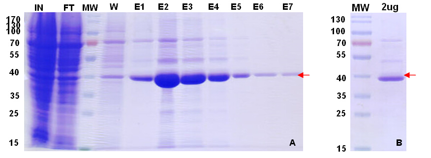 Figure 2. Target protein purification profile. Figure 3. Target protein purification profile.Reducing-PAGE analysis.