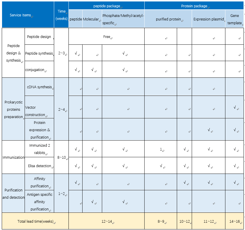 > Custom Services > Antibody Discovery Services > Polyclonal Antibody Serum PreparationService process and packageLeading Biology provides fully customizable services for polyclonal antibody production ranging from peptide design and synthesis to antibody purification and detection. A variety of different hosts to produce polyclonal antibodies are used, including rabbit, rat, mouse, goat, guinea pig, chicken, sheep, monkey, etc. Each project will be discussed thoroughly before starting the protocol so as to sure that your demands will be fulfilled.