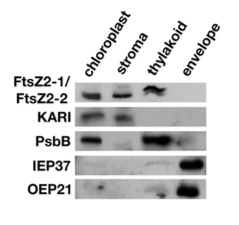 Title:Multiple FtsZ2 isoforms involved in chloroplast division and biogenesis are developmentally associated with thylakoid membranes in Arabidopsis