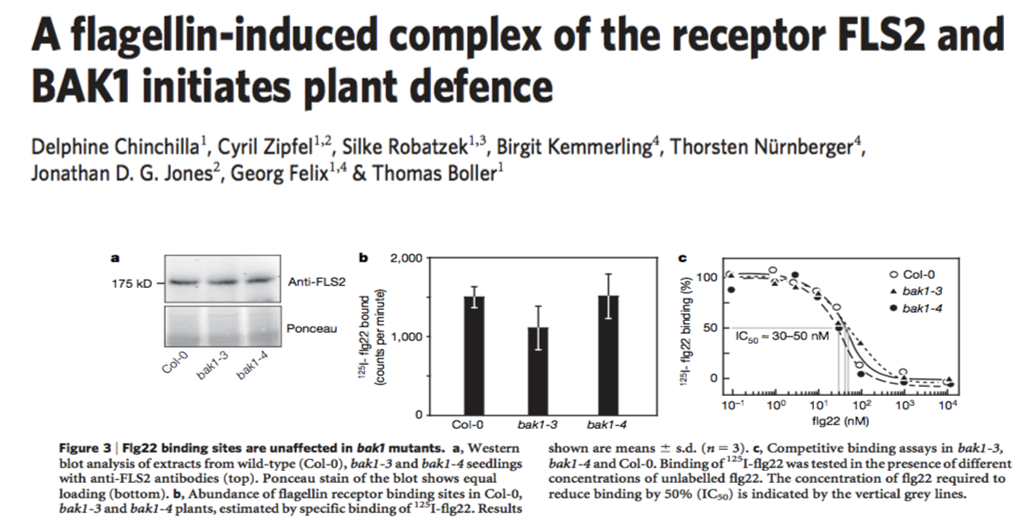 Title: A flagellin-induced complex of the receptor FLS2 and BAK1 initiates plant defence
