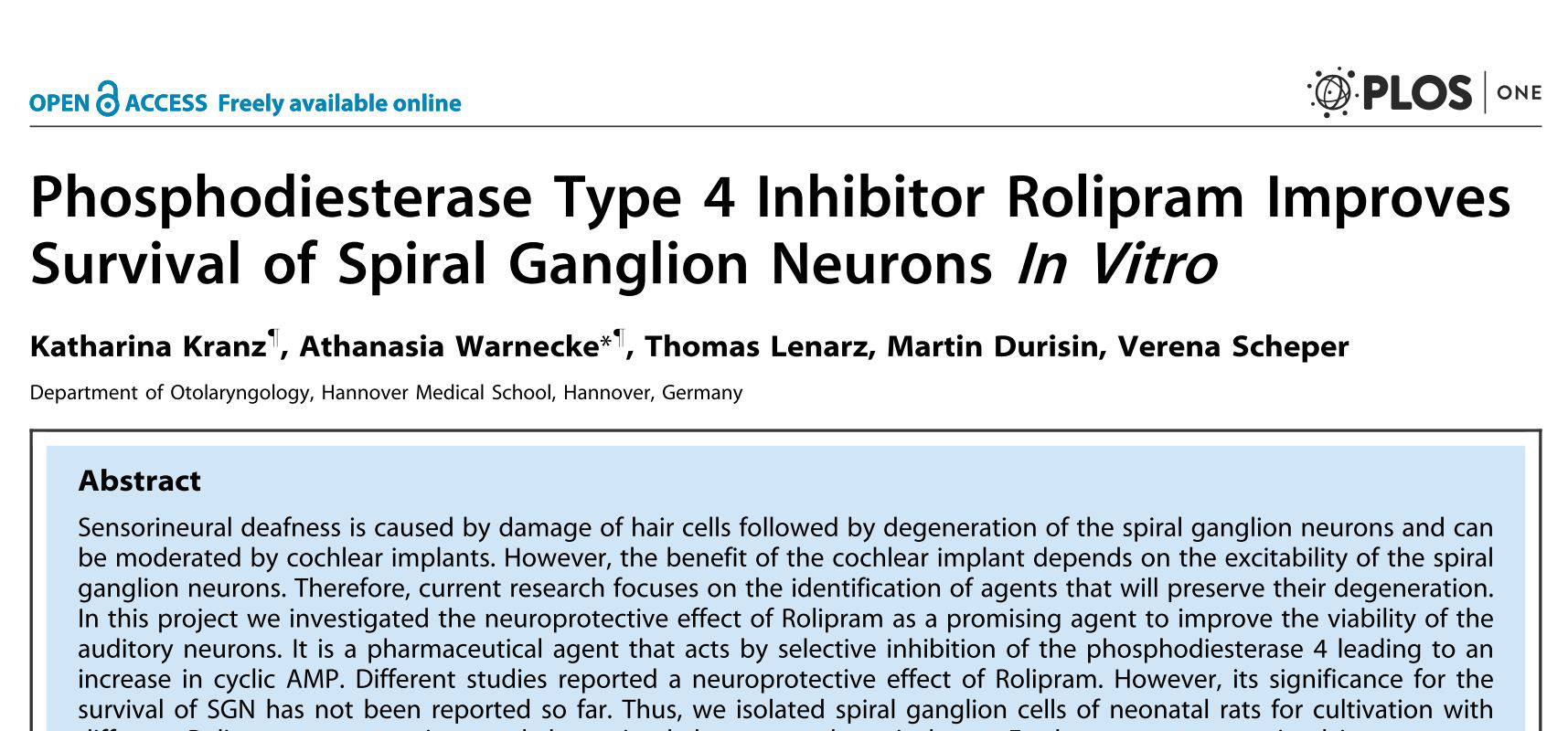 Title: Phosphodiesterase Type 4 Inhibitor Rolipram Improves Survival of Spiral Ganglion Neurons In Vitro