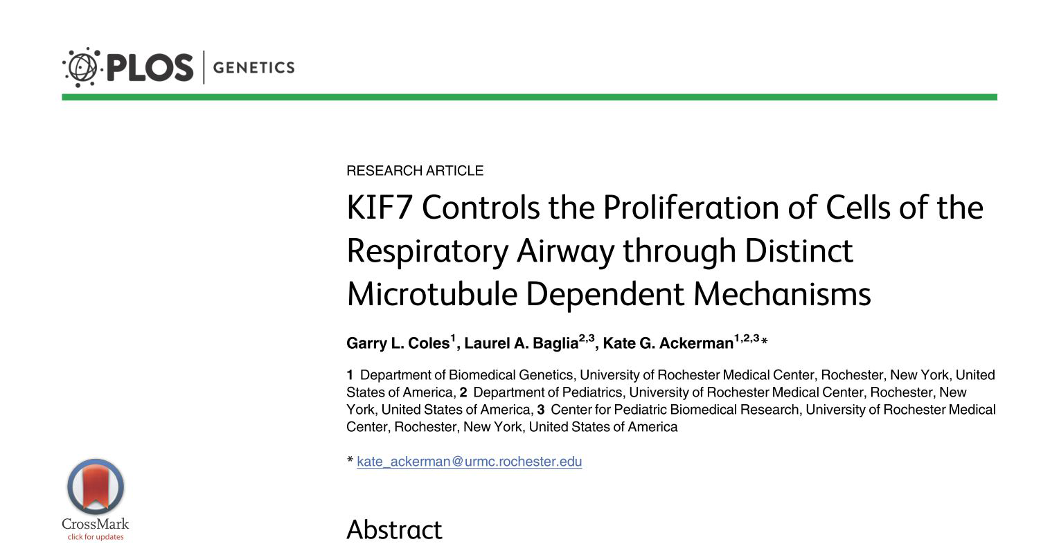 Title: KIF7 Controls the Proliferation of Cells of the Respiratory Airway through Distinct Microtubule Dependent Mechanisms