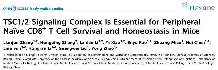 Title: TSC1/2 signaling complex is essential for peripheral naive CD8+ T cell survival and homeostasis in mice.