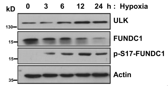 Title:ULK1 translocates to mitochondria and phosphorylates FUNDC1 to regulate mitophagy.