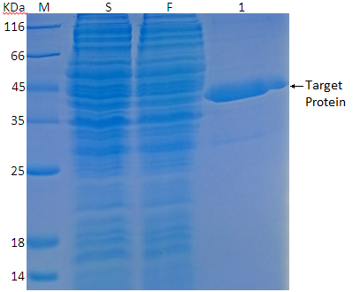 Fig. 3: Protein purification SDS-PAGE M: Protein marker; 1: Target protein