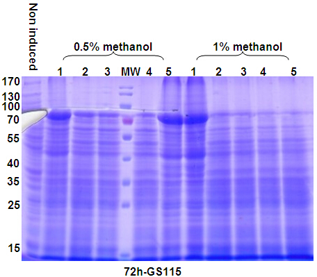 Induction condition: Methanol concentration: 0.5%/1%, induction time 24h/48h/72h