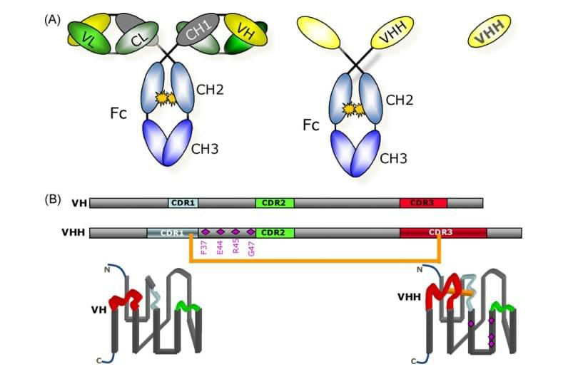 In addition to the pre-built single-domain antibody library, leading biological scientists also have strong expertise in the construction and screening of immunization and synthesis single-domain antibody libraries. We also offer human antibodies that are designed in silicate designs. We selected the best homogenous single domain antibody framework for the human VH backbone, performed ADR transplants in silicone, and then ran computer-based antibody modeling to make the mutation. Combined with the construction and screening of a custom single-domain antibody library, the best camelized (human) antibody sequence can be guaranteed. We also have extensive experience in single-domain antibody affinity and maturation, as well as human or human single-domain antibody productionFig. 1 (A) From left to right the composition of a classical antibody (left), a heavy-chain antibody (middle) and a single-domain antigen-binding entity derived from a heavy-chain antibody, the VHH or single domain antibody (right). (B) The sequence organization of the VH and VHH with framework and CDR’s is schematically represented at the top of this panel. Below is the folded structure of the VH (left) and VHH domain (right with its four β-stranded sheet (back) and the five β-stranded sheet in front). (Muyldermans et al. 2009)