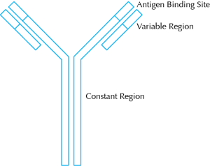 > Information Center > Technical FAQs > Antibody Technology Column > What is an AntibodyAn antibody is a protein produced by the immune system that is capable of binding with high specificity to an antigen. These antigens are typically other proteins, but may be carbohydrates, small molecules or even nucleotides. Antibodies are powerful research tools because they bind specifically to a unique epitope on the antigen, thereby allowing the detection of a specific protein in an assay while avoiding detection of unrelated proteins. This specific binding capability also allows antibodies to be used in diagnostic applications such as pregnancy tests and in therapeutic applications such as cancer treatments. The antibody itself is a Y-shaped protein that contains a constant region common to all antibodies produced by a particular species and a variable region that is unique and specific to a particular epitope. The following diagram illustrates this structure: