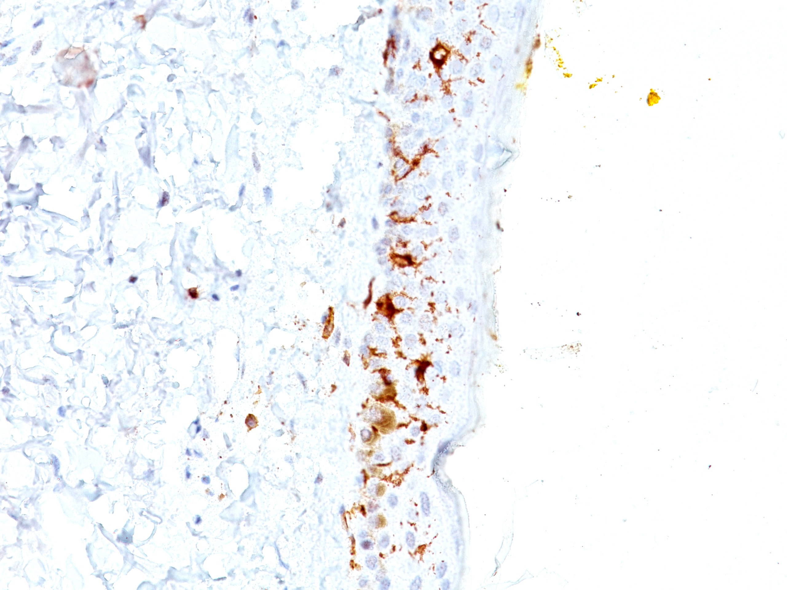 Formalin-fixed, paraffin-embedded human human skin stained with CD1a MAb (C1A/711). |