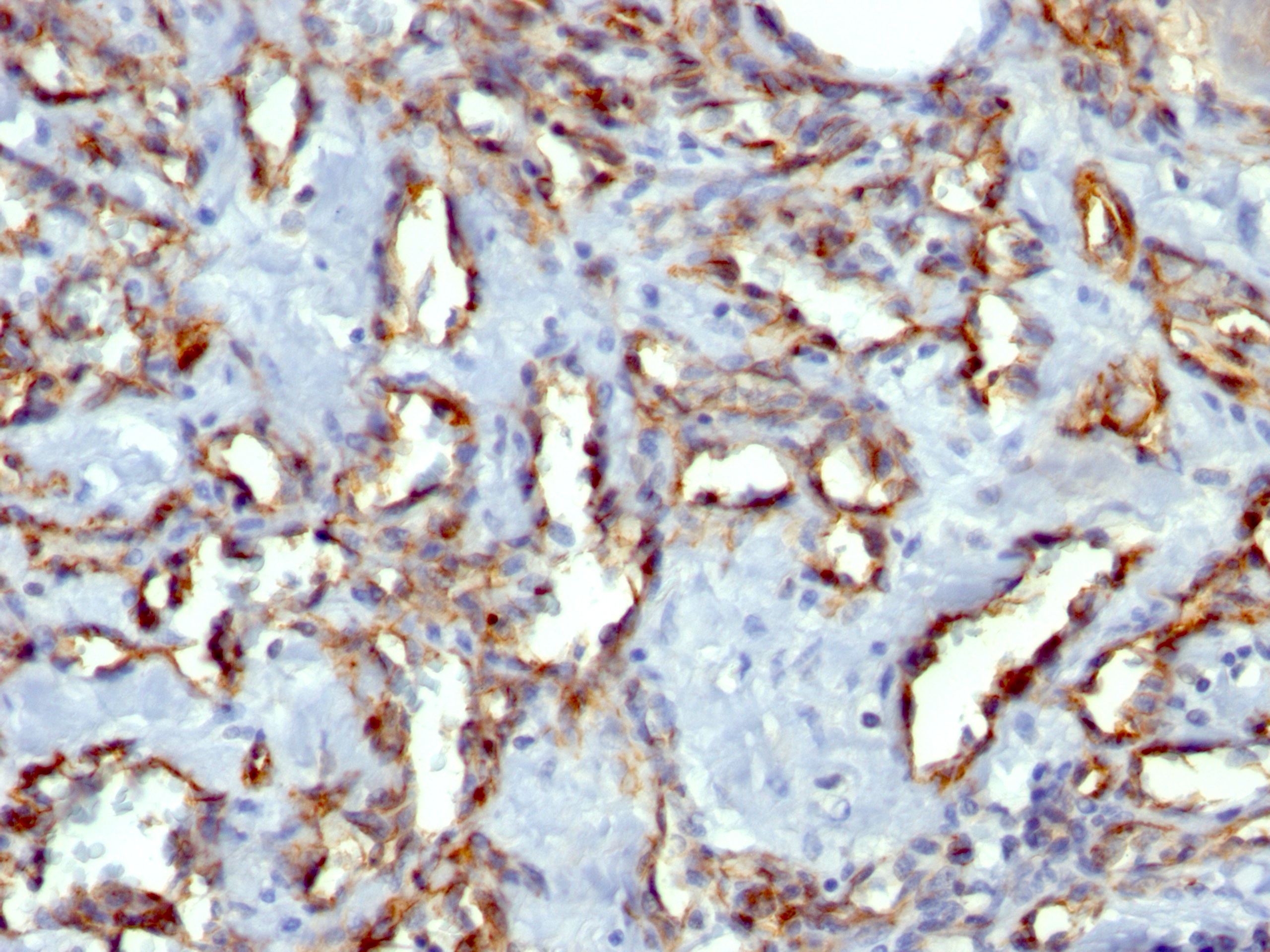 Formalin-paraffin human Angiosarcoma stained with CD31 MAb (C31.3 + JC/70A).