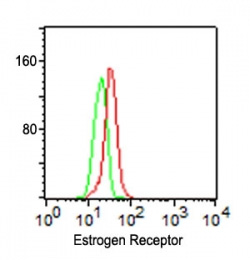 Intracellular staining of MCF-7 cells using Estrogen Receptor Ab (ER506). Paraformaldehyde with 0.1% Tween-PBS was used to permealize the cells. |