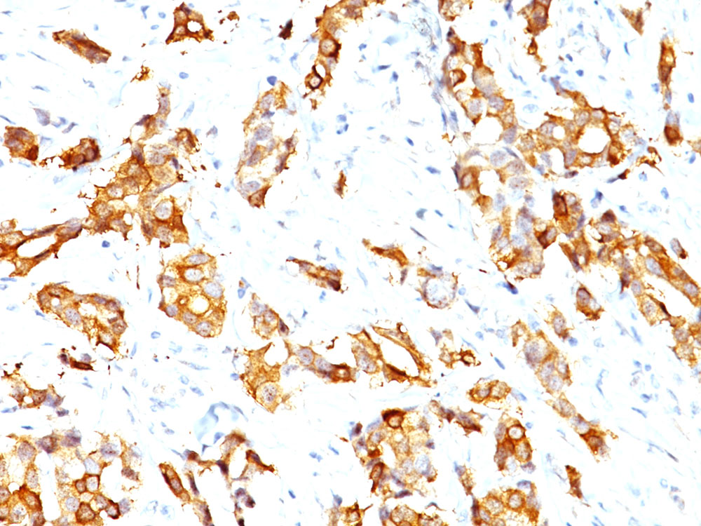 Formalin-fixed, paraffin-embedded human breast carcinoma (10X) stained with HSP27 MAb (G3.1)