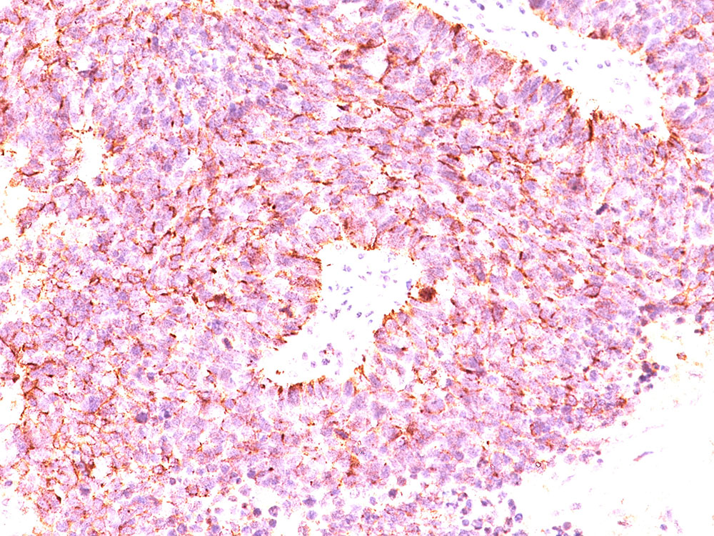 Chromogranin A is present in neuroendocrine cells throughout the body, including the neuroendocrine cells of the large and small intestine, adrenal medulla and pancreatic islets. It is an excellent marker for carcinoid tumors, pheochromocytomas, paragangliomas, and other neuroendocrine tumors. Co-expression of chromogranin A and neuron specific enolase (NSE) is common in neuroendocrine neoplasms. Reportedly, co-expression of certain keratins and chromogranin indicates neuroendocrine lineage. The presence of strong anti-chromogranin staining and absence of anti-keratin staining should raise the possibility of paraganglioma. The co-expression of chromogranin and NSE is typical of neuroendocrine neoplasms. Most pituitary adenomas and prolactinomas readily express chromogranin.