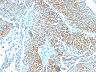 Formalin-fixed, paraffin-embedded human Lung Squamous Cell Carcinoma stained with TRIM29 Monoclonal Antibody (TRIM29/1041).