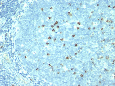 Formalin-fixed, paraffin-embedded human Tonsil stained with CD57 Monoclonal Antibody (SPM527). |
