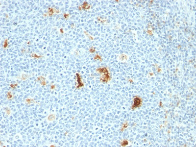 Formalin-fixed, paraffin-embedded human Tonsil stained with Macrophage L1 Protein Monoclonal Antibody (SPM281) |