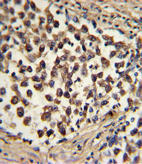 Formalin-fixed and paraffin-embedded human testis with SNAI Monoclonal Antibody, which was peroxidase-conjugated to the secondary antibody, followed by DAB staining. This data demonstrates the use of this antibody for immunohistochemistry; clinical relevance has not been evaluated.