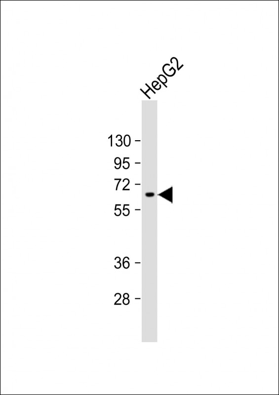 Anti- at 1:1000 dilution + HepG2 whole cell lysate Lysates/proteins at 20 μg per lane. Secondary Goat Anti-mouse IgG, (H+L), Peroxidase conjugated at 1/10000 dilution. Predicted band size : 69 kDa Blocking/Dilution buffer: 5% NFDM/TBST.