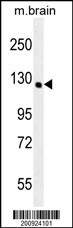 NTRK1 (Cat. AMM02341G) western blot analysis in mouse brain tissue lysates (35μg/lane).This demonstrates the NTRK1 antibody detected the NTRK1 protein (arrow).(1:4000) |