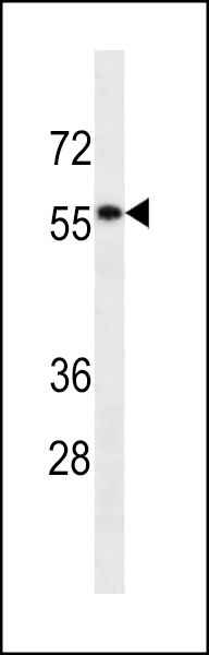 DESM Antibody (Cat. AMM02361G) western blot analysis in CEM cell line lysates (35μg/lane).This demonstrates the DESM antibody detected the DESM protein (arrow). |