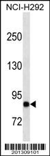 BCL6 Antibody (C-term) (Cat. AMM02374G) western blot analysis in NCI-H292 cell line lysates (35μg/lane).This demonstrates the BCL6 antibody detected the BCL6 protein (arrow).