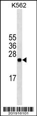 PSMA5 Antibody (Cat. AMM02406G) western blot analysis in K562 cell line lysates (35μg/lane).This demonstrates the PSMA5 antibody detected the PSMA5 protein (arrow). |
