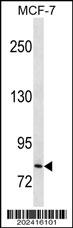 CTNNB1 Antibody (Cat. AMM02416G) western blot analysis in MCF-7 cell line lysates (35μg/lane).This demonstrates the CTNNB1 antibody detected the CTNNB1 protein (arrow). |