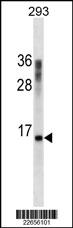 CST3 Antibody (Cat. AMM02427G) western blot analysis in 293 cell line lysates (35μg/lane).This demonstrates the CST3 antibody detected the CST3 protein (arrow). |