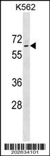 TP63 Antibody (Ascites)(Cat. AMM02433G) western blot analysis in K562 cell line lysates (35μg/lane).This demonstrates the TP63 antibody detected the TP63 protein (arrow). |