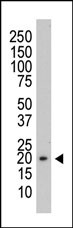 The monoclonal antibody anti-PRL3 (Cat. AMM02500G) is used in Western blot to detect PRL3 in 293 cells transfected with PRL3. |
