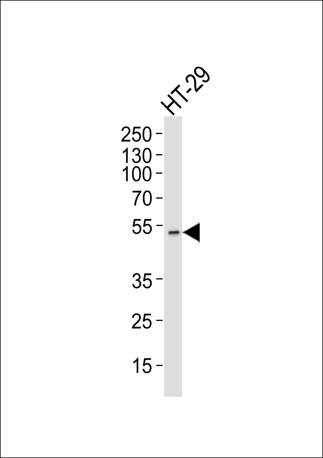 Western blot analysis of lysate from HT-29 cell line, using AURKA Antibody(AMM02504G). AMM02504G was diluted at 1:1000. A goat anti-mouse IgG H&L(HRP) at 1:3000 dilution was used as the secondary antibody. Lysate at 35μg. |